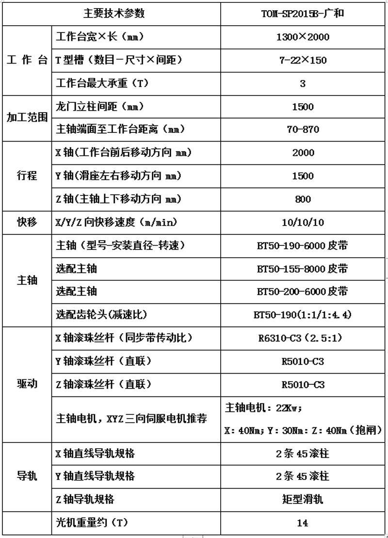 光机技术参数