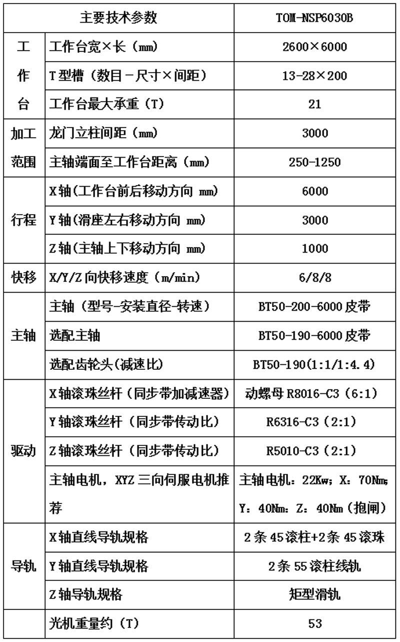 光机技术参数