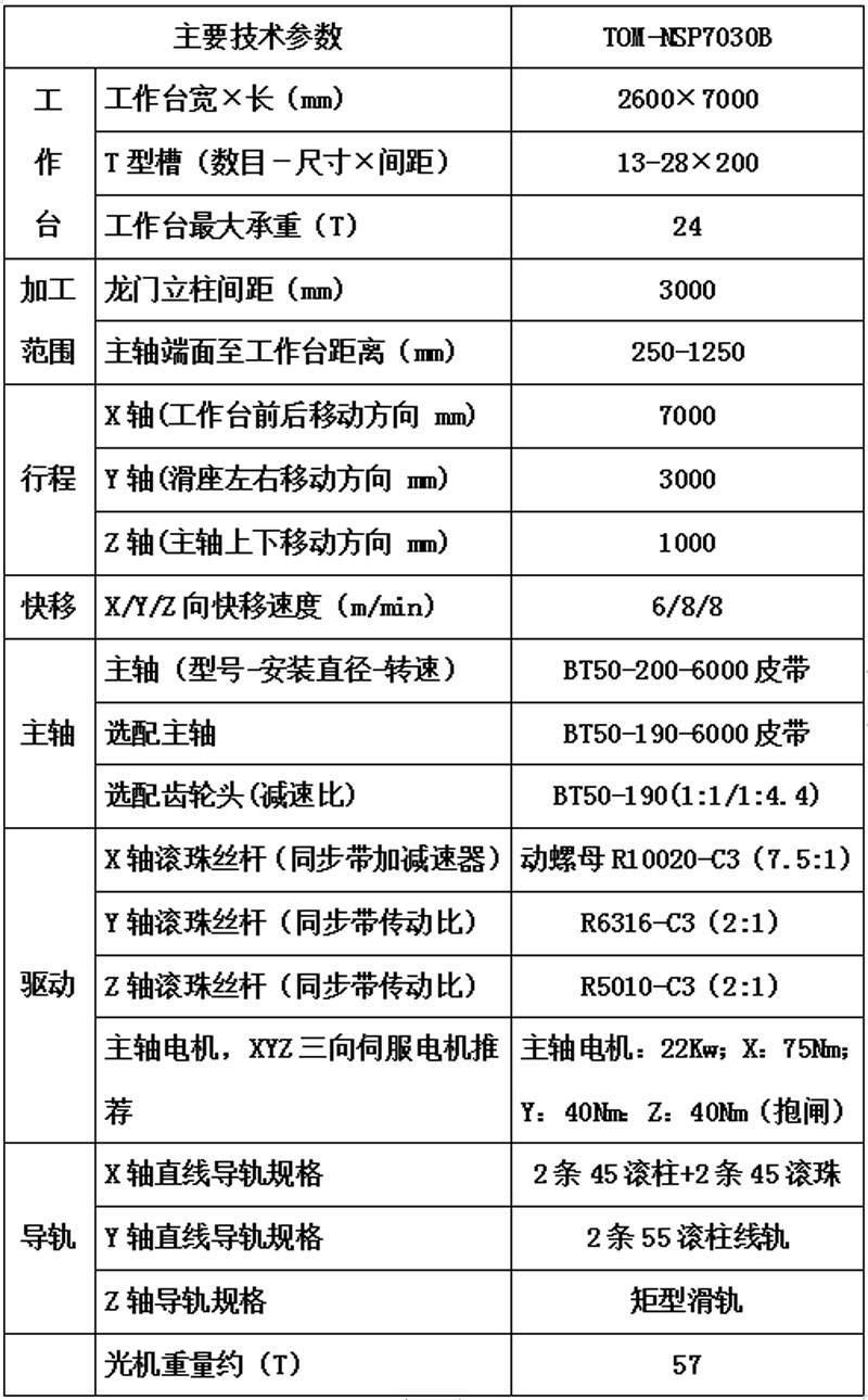 光机技术参数