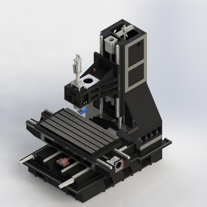 1.光机结构为定柱式,十字滑台结构。机身采用超大稳固底座,高刚性的大跨距人字形立柱,高速切削刚性好不变形。